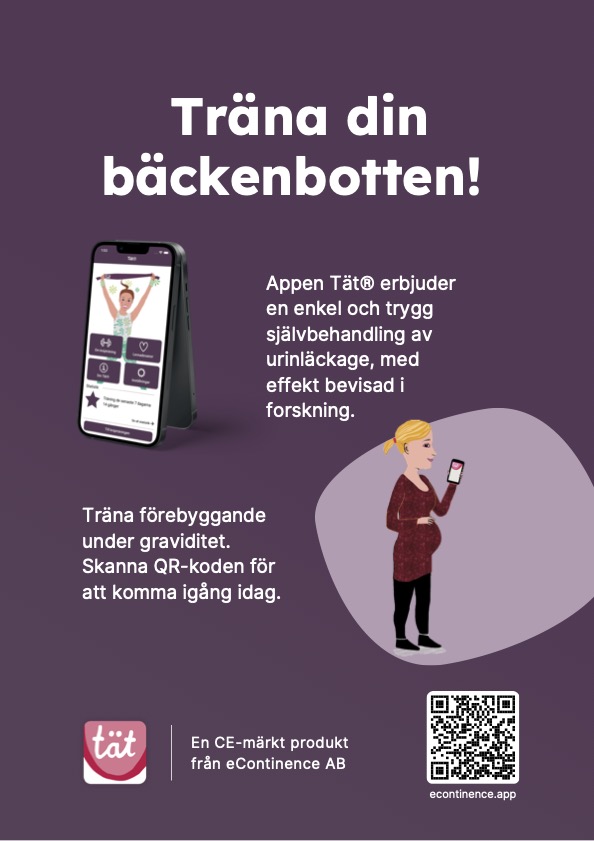 Appen Tät® är ett tryggt val om du vill rekommendera en träningsapp till någon som har ansträngningsinkontinens. Appen är ett resultat av svensk forskning och CE-märkt som medicinteknisk produkt. CE-märkningen innebär att appen har en visad klinisk nytta och att appen uppfyller alla krav på säkerhet och prestanda som ställs av regelverket.